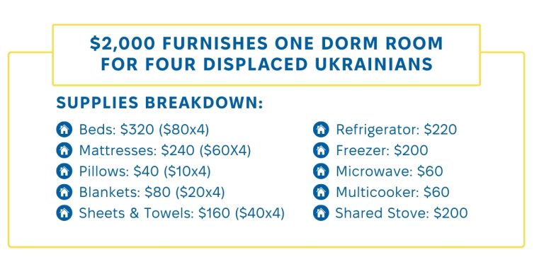 We are extending our goal to $100,000 to expand how many people we can serve. Every additional gift helps us outfit more rooms and welcome more displaced Ukrainians into stable housing during the winter months.