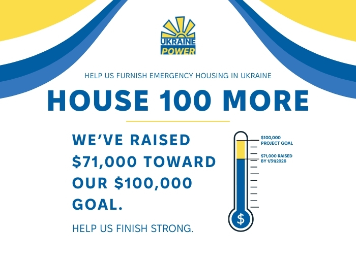 From all of us at Ukraine Power, thank you for showing up with real generosity. You got House 100 past the finish line, and now you are helping us go further.